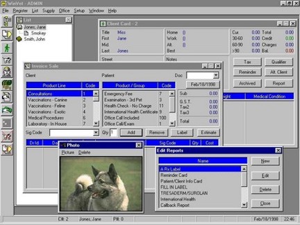 Veterinary clinic and animal hospital management system with invoicing, inventory control and client/patient database capabilities.